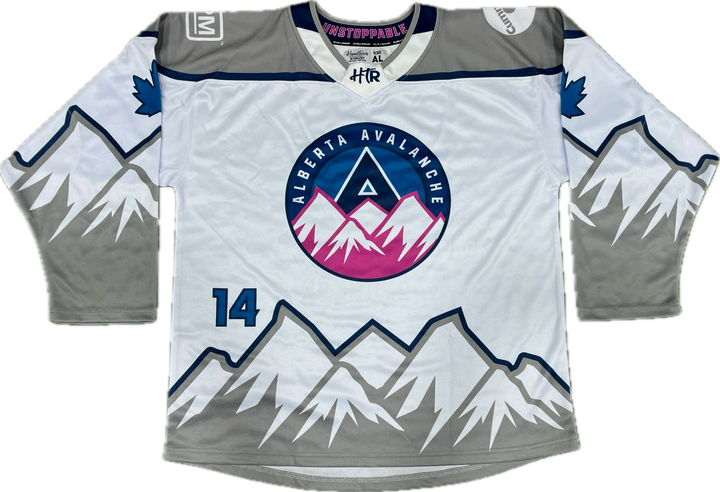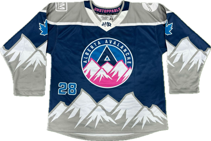 The jersey features a vibrant pink paired with navy and teal and dynamic mountain terrain graphics, blending style and strength. It’s not just a jersey; it’s a statement piece that embodies the spirit of adventure and team pride.